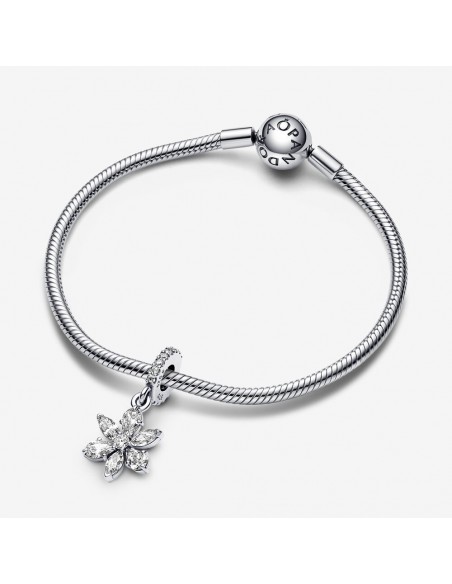Porta con te la bellezza della natura con questo charm pendente Herbarium Fiore Luminoso. Il charm pendente in Argento Sterling 925 presenta una composizione di pietre a forma di goccia e di marquise che si alternano attorno a una pietra centrale rotonda, dando vita a una forma ispirata ai fiori e alle foglie. Una reinterpretazione elegante delle forme che si trovano in natura, perfetta per donare un tocco delicato a bracciali, orecchini e collane.
