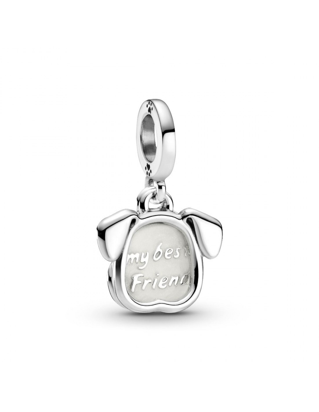 Porta sempre con te il tuo amico peloso preferito con il charm pendente Il mio cane. Rifinito a mano e realizzato in Argento Sterling 925 e smalto sfavillante applicato a mano, il charm presenta un disco a forma di testa di cane, completa di orecchie, e un secondo disco che ne rappresenta il corpo, completato da una coda lucida. La scritta in rilievo “My best friend” è dipinta con smalto scintillante sul secondo disco, mentre il gancio include due impronte di zampe su ogni lato. L’accessorio perfetto per un’amante dei cani.