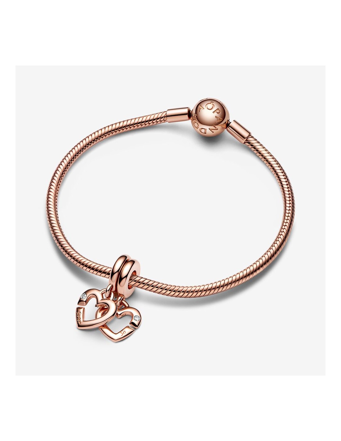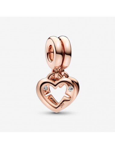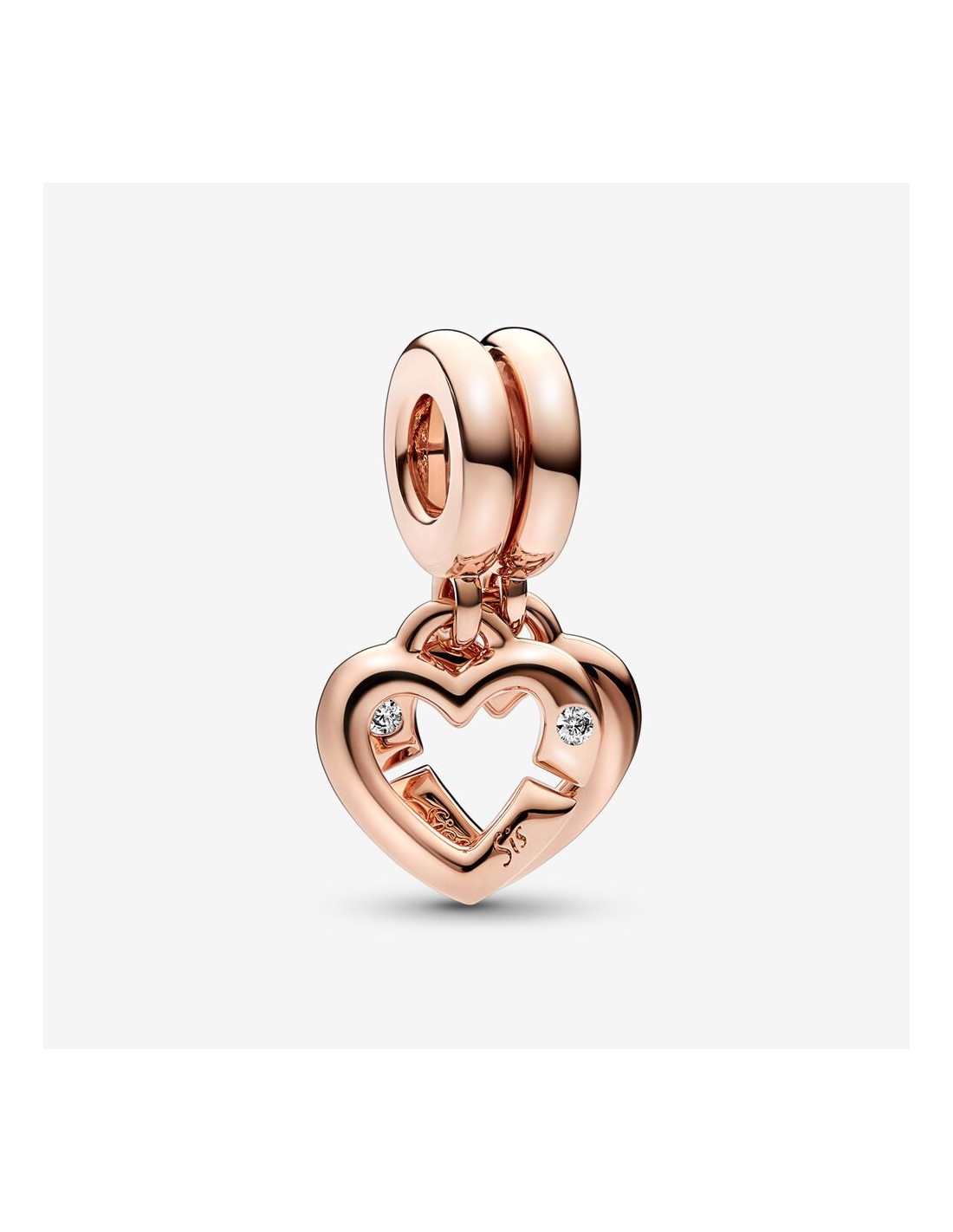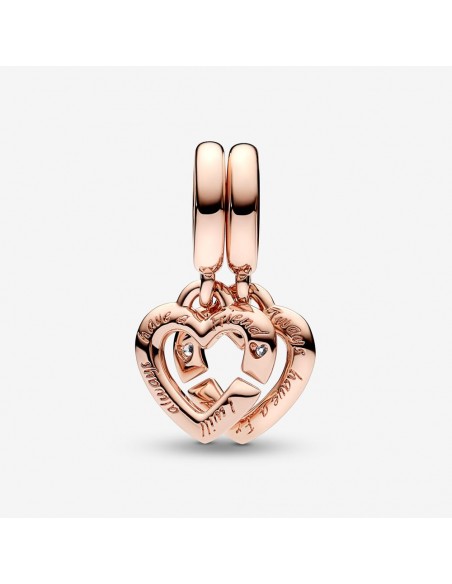 Realizzato nell'esclusiva lega metallica placcata oro rosa 14k, il charm include due cuori aperti interconnessi, ognuno dei quali presenta una pietra di zirconia cubica incolore scintillante e un’incisione (una con la scritta “Sis”, l’altra “Sister”).