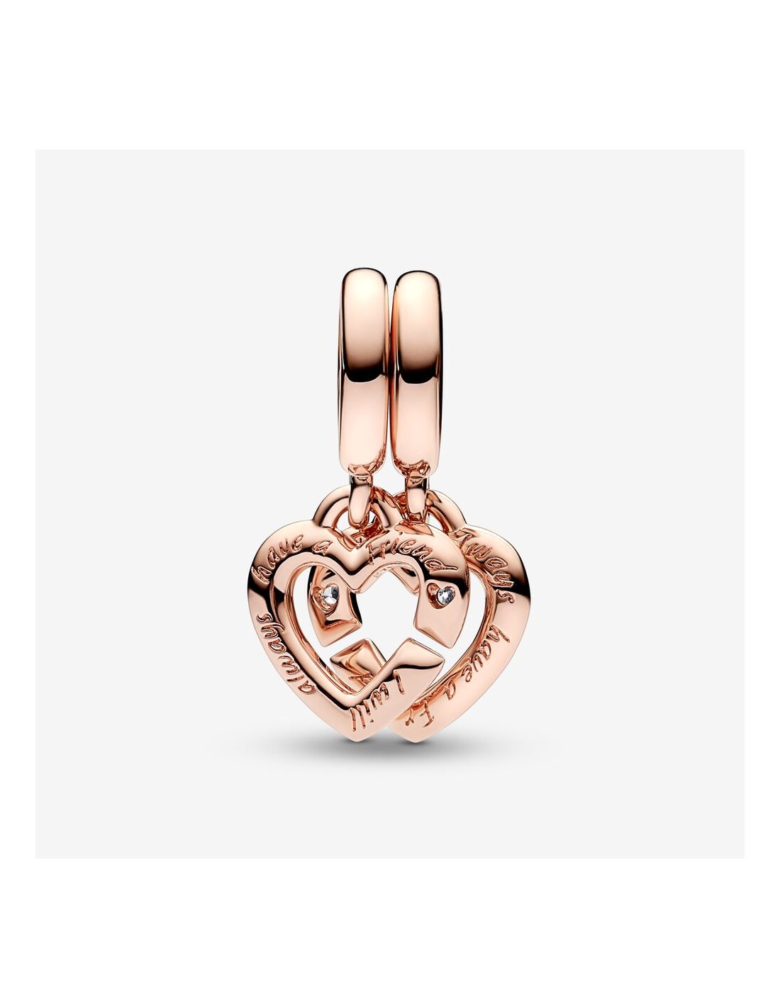 Celebra i legami tra sorelle con il charm pendente Sorelle. Realizzato nell'esclusiva lega metallica placcata oro rosa 14k, il charm include due cuori aperti interconnessi, ognuno dei quali presenta una pietra di zirconia cubica incolore scintillante e un’incisione (una con la scritta “Sis”, l’altra “Sister”). Sul retro, ogni cuore mostra un piccolo intaglio a forma di cuore e l’incisione “I will always have a friend” (Avrò sempre un’amica). I cuori possono essere separati, così ne puoi regalare uno a tua sorella, per ricordare il vostro legame eterno.