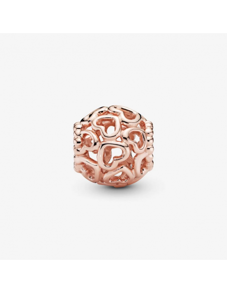 I cuori sono un simbolo d’amore eterno. Sapientemente rifinito a mano, questo espressivo charm in Pandora Rose (la nostra esclusiva lega metallica con placcatura in Oro rosa 14K) è caratterizzato da cuori con lavorazione openwork che lasciano intravvedere il bracciale su cui è inserito il charm. Indossalo sul tuo bracciale o bracciale rigido Pandora Moments preferito insieme ad altri charm per raccontare la tua storia. Puoi anche indossarlo come pendente di una collana.