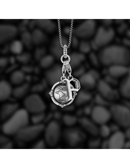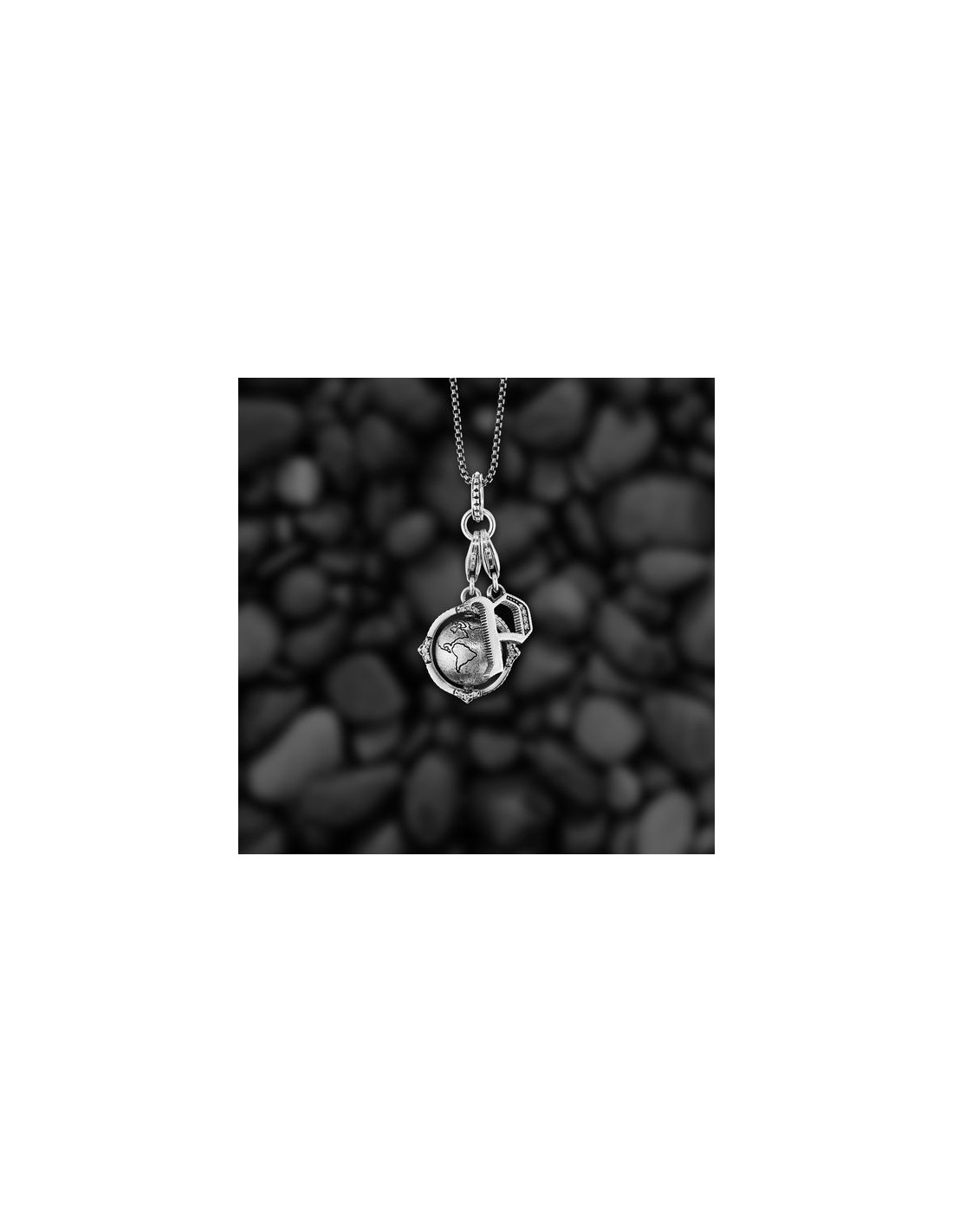 Categoria ciondolo Charm. Materiale argento sterling 925 niellato. Pietre zircone sintetico bianco. Colore argentato, bianco. Chiusura a moschettone. Altezza appross. 2,50 cm. Larghezza appross. 1,30 cm. Codice articolo: 1596-643-21.