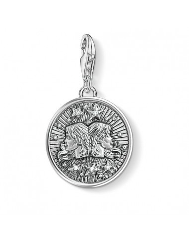 Categoria ciondolo Charm. Materiale argento sterling 925 niellato. Pietre zircone sintetico bianco. Colore argentato, bianco. Chiusura a moschettone. Funzioni con incisione. Altezza appross. 2,90 cm. Larghezza appross. 1,80 cm. Codice articolo: 1642-643-21.
