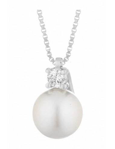 Collana con diamanti taglio brillante e perla, prodotta da P&G Gioielli, realizzata in oro bianco 750%, con diamanti taglio brillante da 0.03 centesimi di carato perla mm 7,5/8 peso totale oro grammi oro 0.95