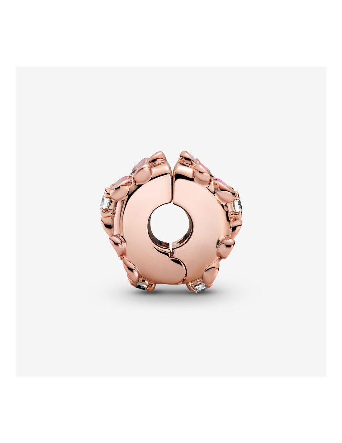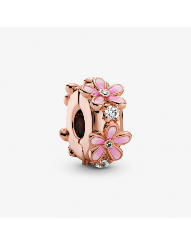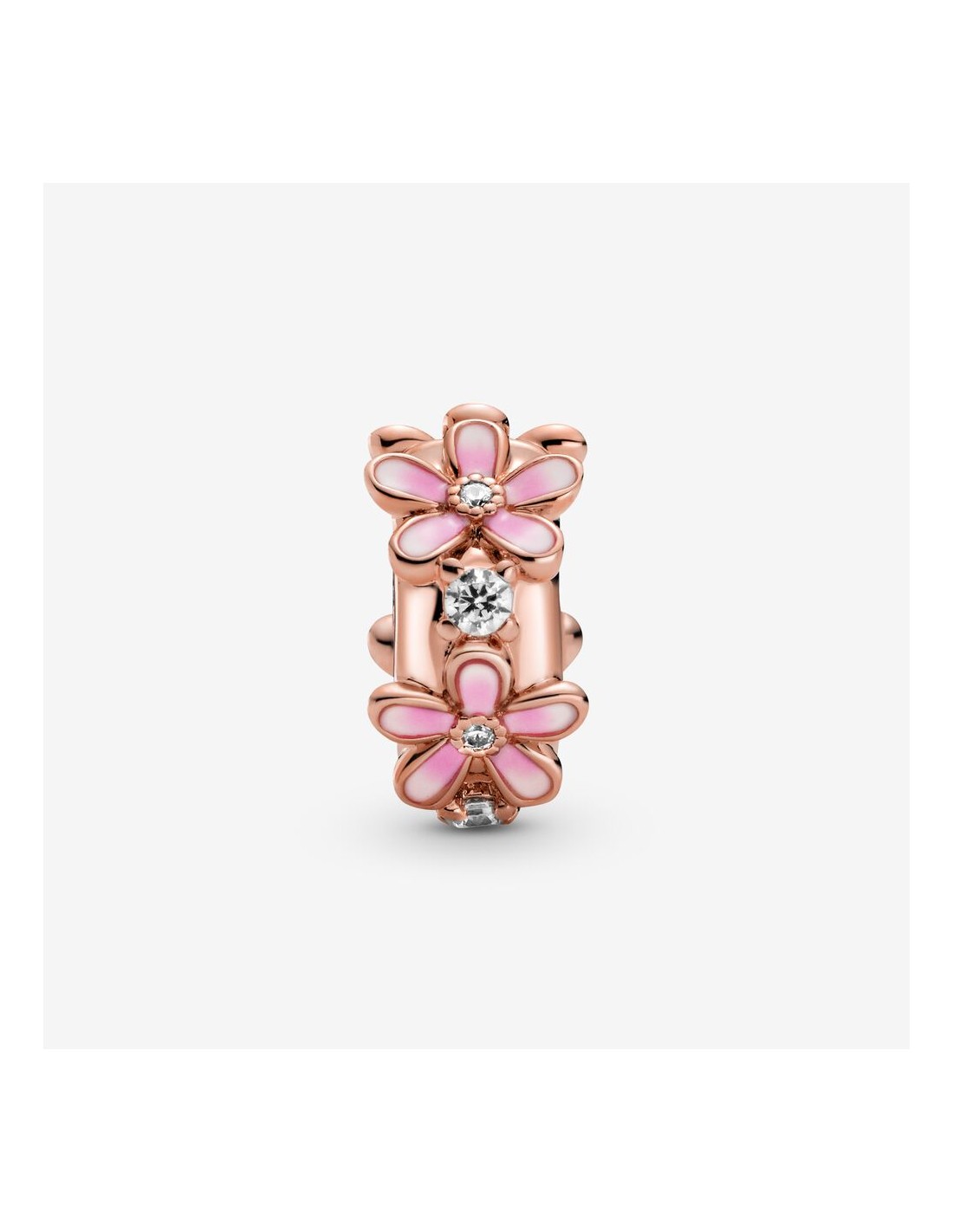 Aggiungi colore al tuo look con la clip Margherita rosa. Caratterizzato da pietre di zirconia cubica incolori scintillanti e smalto bianco e rosa lampone trasparente, il charm dalle sfumature calde è rifinito a mano e realizzato in Pandora Rose (la nostra esclusiva lega metallica con placcatura in Oro rosa 14K). Le margherite, che simboleggiano la diversità e il senso di comunità, sono dipinte con uno smalto dalle delicate sfumature digradanti sui petali e sono completate da pietre in miniatura al centro. Grazie al silicone interno, questo charm floreale è stato creato per inserirsi saldamente in tutti i bracciali con maglia snake.