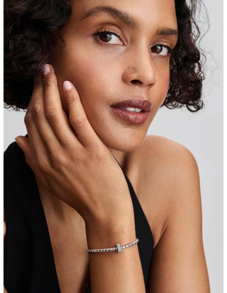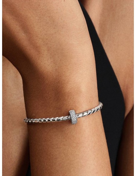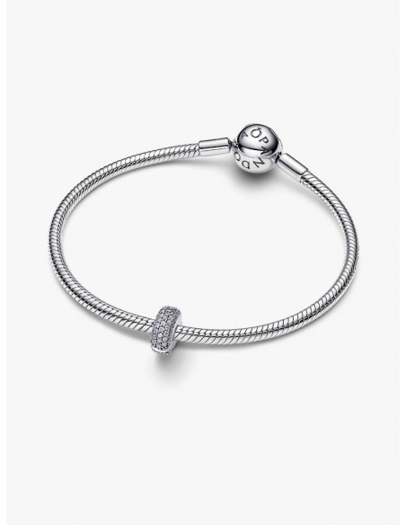 Aggiungi un tocco di luce al tuo look con la nuova clip in Argento Sterling 925 con pavé scintillante e inserto in silicone che la tiene in posizione, perfetta da indossare su un bracciale o una collana.