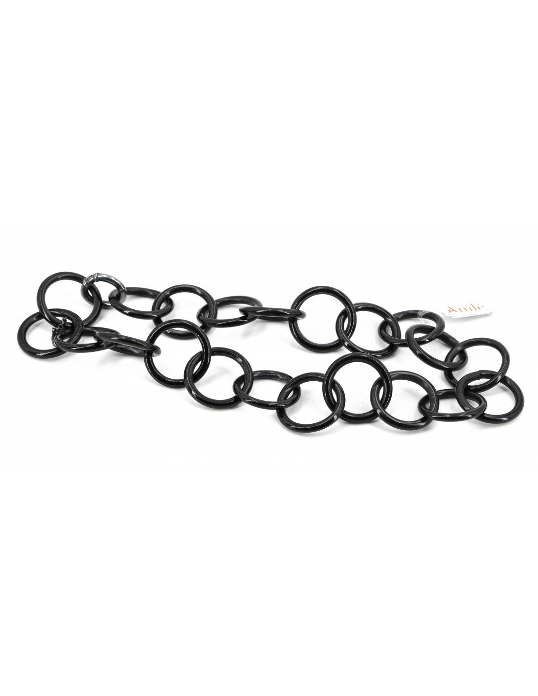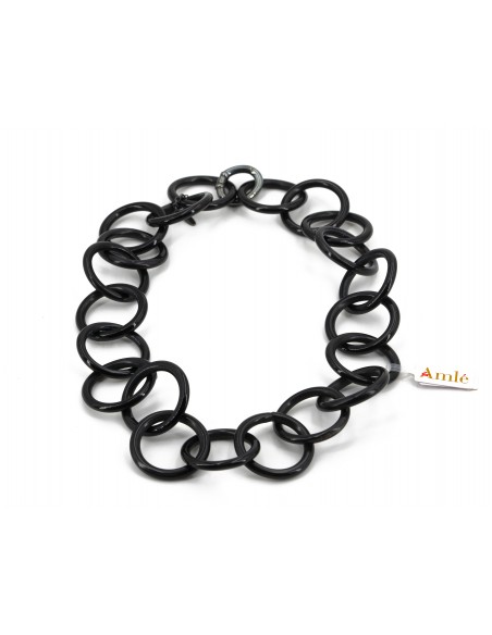 Collana Amlè in Corno Nero e Argento Brunito (925). Lunghezza indossata 22cm.