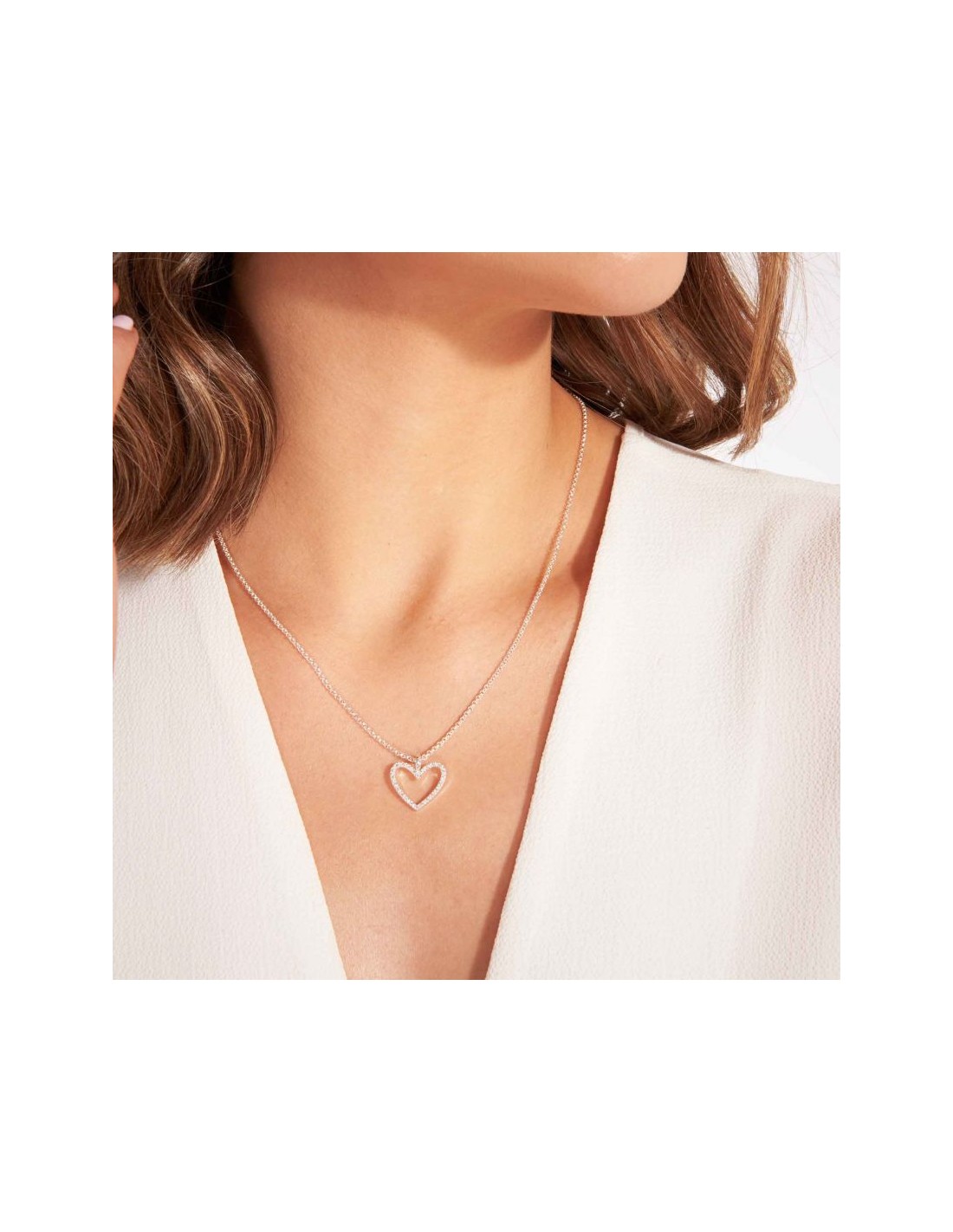 Assicurati di scintillare con questa collana Evie senza tempo che amerai per sempre. Elegantemente semplice in una bella forma, questa collana a cuore è rifinita con cristalli di pavé finemente tagliati che luccicano e luccicano, pendendo elegantemente da una classica catena d'argento