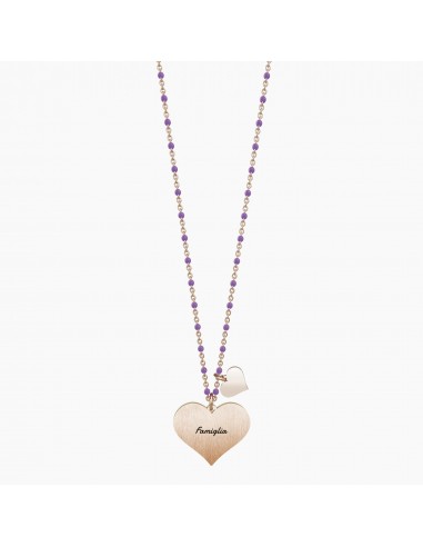 "La vita ed i sogni sono fogli di uno stesso libro. Leggerli in ordine  vivere, sfogliarli a caso  sognare." - Arthur Schopenhauer - Collana lunga in acciaio color oro rosa con ciondolo satinato a cuore e catena rol˜ con inserimenti in smalto rosa.