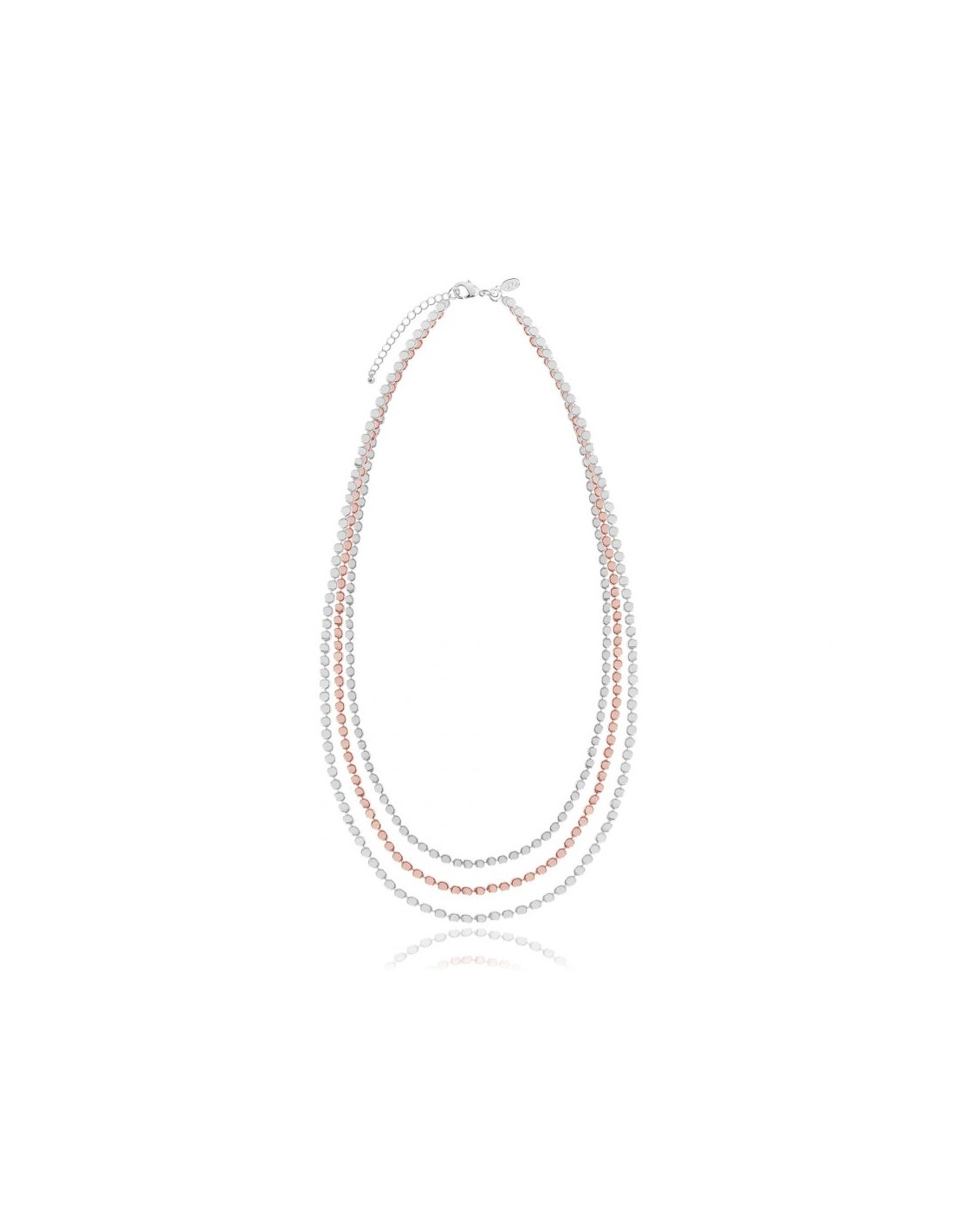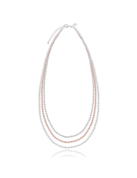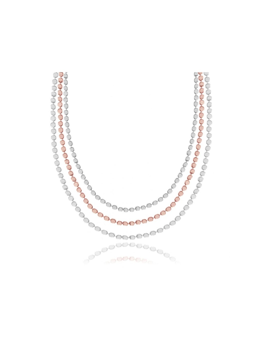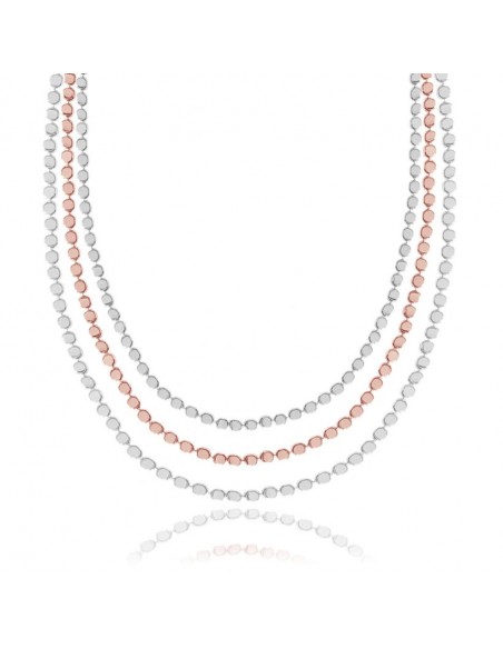 Genere Catena multistrato. Tipo di metallo Ottone placcato in oro rosa e argento. Collezione ciottoli. Dimensioni 46 cm con estensore 5 cm.