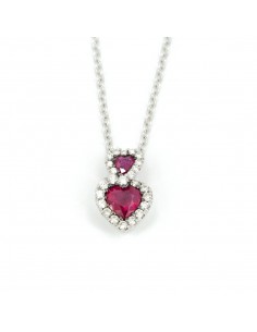Collana in Oro con Pendente cuori in Diamanti e Rubini