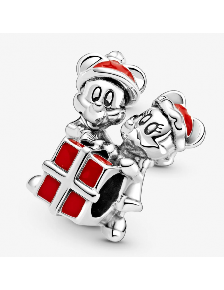 Rendi le feste ancora più speciali con questo charm Regalo con Mickey Mouse e Minnie della collezione Disney x Pandora. Rifinito a mano e realizzato in Argento Sterling 925, il gioiello presenta Mickey Mouse e Minnie, gli amatissimi personaggi Disney, con occhi e ciglia intagliati per enfatizzarne i lineamenti. Mickey Mouse indossa una sciarpa e tiene Minnie per la spalla. Entrambi indossano berretti natalizi decorati da smalto rosso applicato a mano, coordinati con il regalo che tengono davanti a loro, completato da un nastro e da un fiocco. Regala questo charm, decorato dai loghi Pandora e Disney sul retro, a una persona speciale per dimostrare che sei felice di passare le feste con lei.