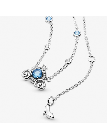 Celebra il 70° anniversario di Cenerentola Disney con questa collana Carrozza a forma di zucca. Rifinito a mano e realizzato in Argento Sterling 925, il gioiello che raffigura la famosa carrozza include una pietra blu centrale circondata da pietre di zirconia cubica trasparenti, una corona in 3D sul tetto e linee concentriche che formano le ruote. Pietre più grandi sono inserite lungo la catena regolabile impreziosito dalla scarpetta di Cenerentola e un pendente con il monogramma della O coronata Pandora agganciato alla chiusura. Abbina la collana a orecchini in Argento Sterling 925 per un look tono su tono semplicemente magico.