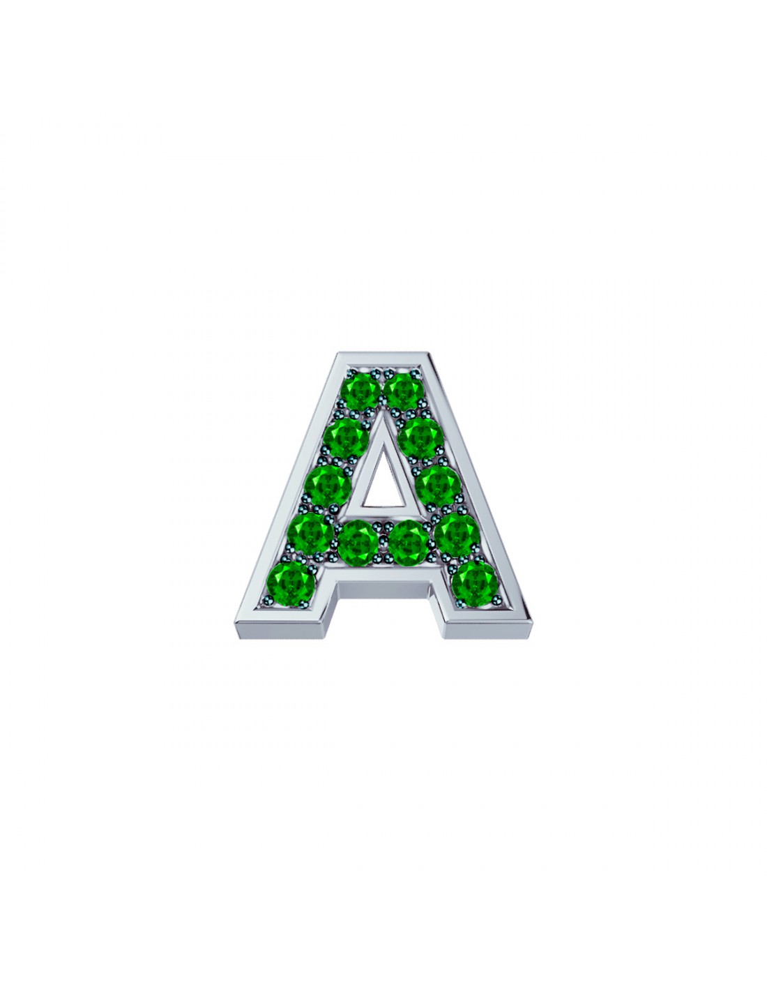 Elemento Lettera A Classica in oro bianco 18 kt e smeraldi