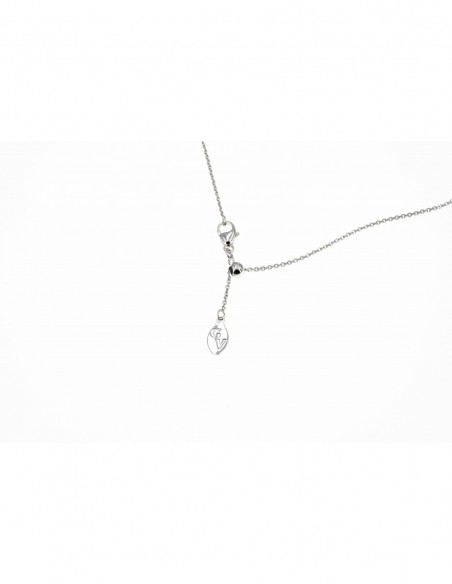 Collana da donna, puto luce, prodotta da Giorgio Visconti, referenza articolo GB37500F, realizzata in oro bianco 750%, con un diamante taglio brillante, 0.10 centesimi di carato, colore G selezionato, purezza VS, modello catenina veneziana, lunghezza catenina 45.50 centimetri, chiusura a moschettone, peso totale grammi 3.80