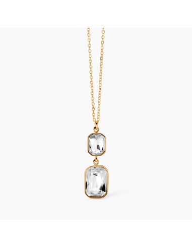 Girocollo regolabile in acciaio dorato con cristalli rettangolari bianchi.
