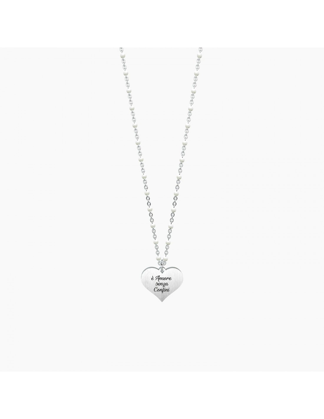 Il cuore di una nonna  amare senza confini. E viziare senza limiti! Collana corta in acciaio con ciondolo satinato a cuore e catena rol˜ con inserimenti in smalto bianco.