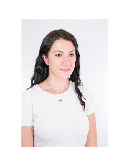 L'amore di una mamma non si pu˜ spiegare, si pu˜ solo vivere. Collana corta in acciaio con ciondolo a cuore e catena rol˜ con inserimenti in smalto bianco.