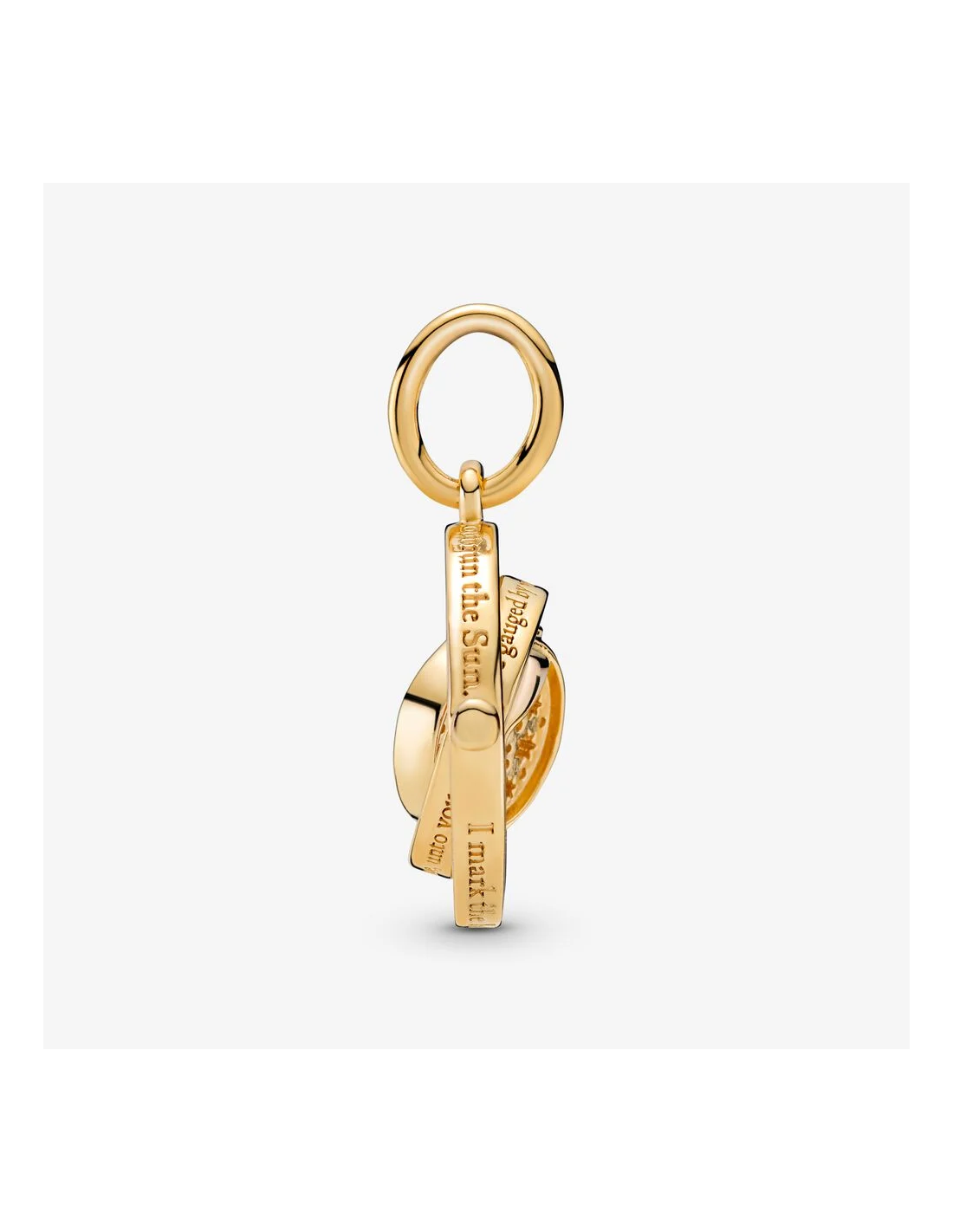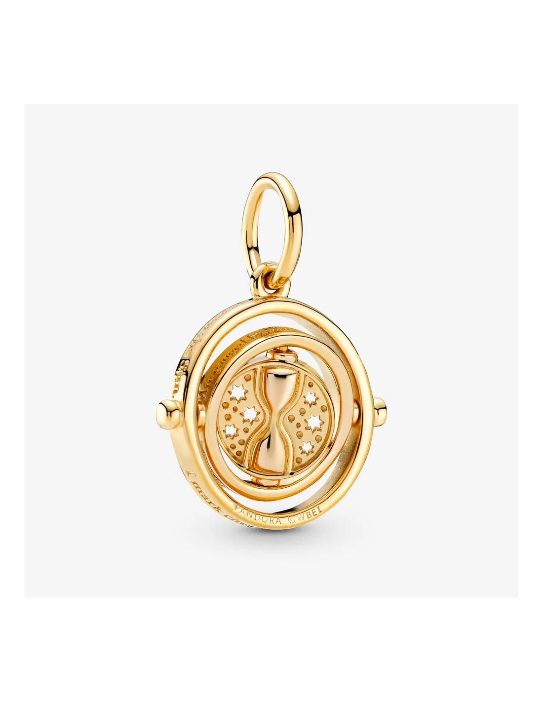 Segui l'esempio di Hermione con il pendente Harry Potter, Gira il tempo rotante. Rifinito a mano in Pandora Shine (miscela di metalli unica placcata in oro 18k), questo design include cerchi interni rotanti e un disco con un dettaglio a clessidra in rilievo circondato da stelle ritagliate. Le incisioni sul ciondolo dicevano: "Segnalo le ore, tutti, né ho ancora superato il Sole"; "Il mio uso e valore, per te, sono misurati da ciò che devi fare". Indossalo con gli stili Pandora Shine per un look tonale affascinante.
