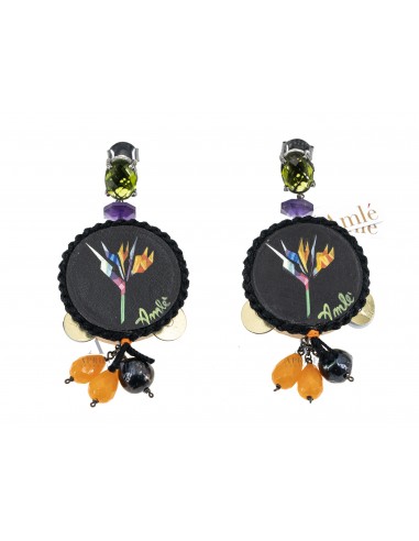 Orecchini Amlè con tamburelli dipinti a mano e pietre naturali