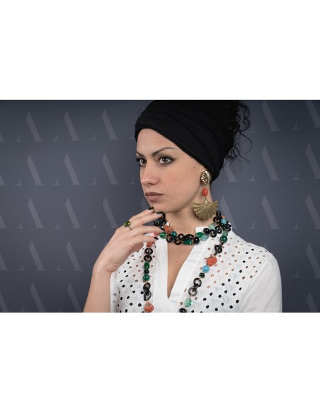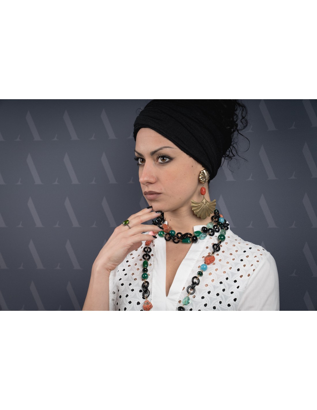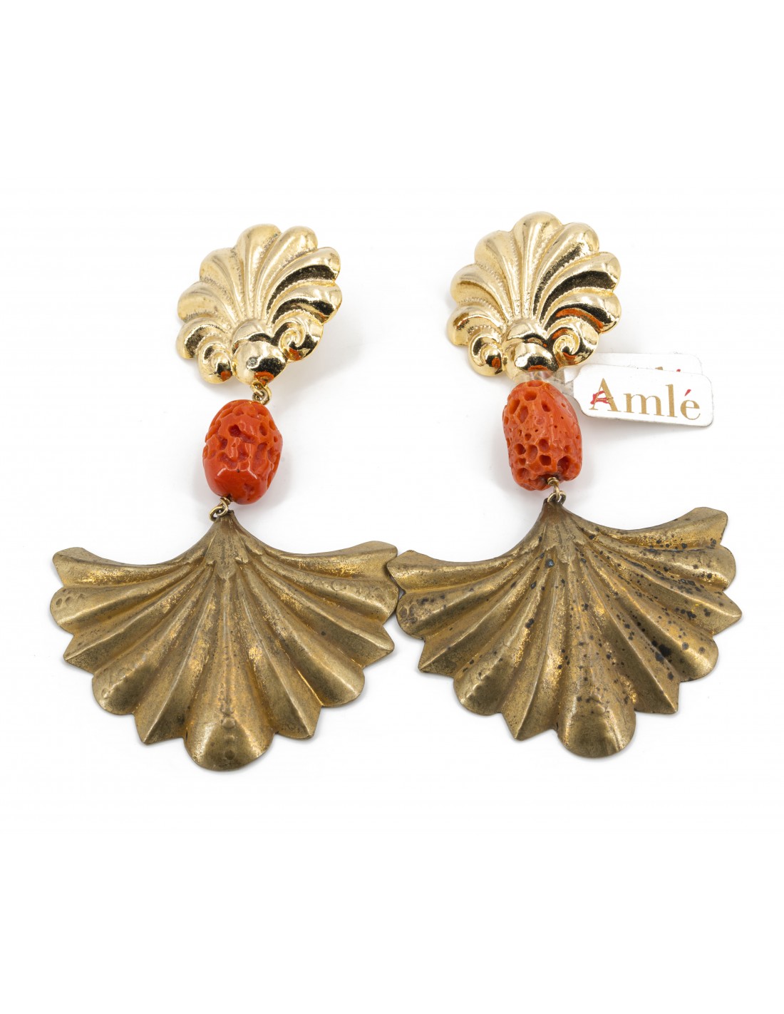 Orecchini Amlè in Argento Dorato (925) e Corallo Rosso. Chiusura a Perno con Farfallina.