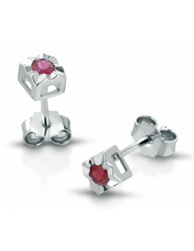 Orecchini colore, prodotti da P&G Gioielli, realizzati in oro bianco 750%, con un rubino taglio brillante, 0.12 centesimi di carato, peso totale grammi 1.08