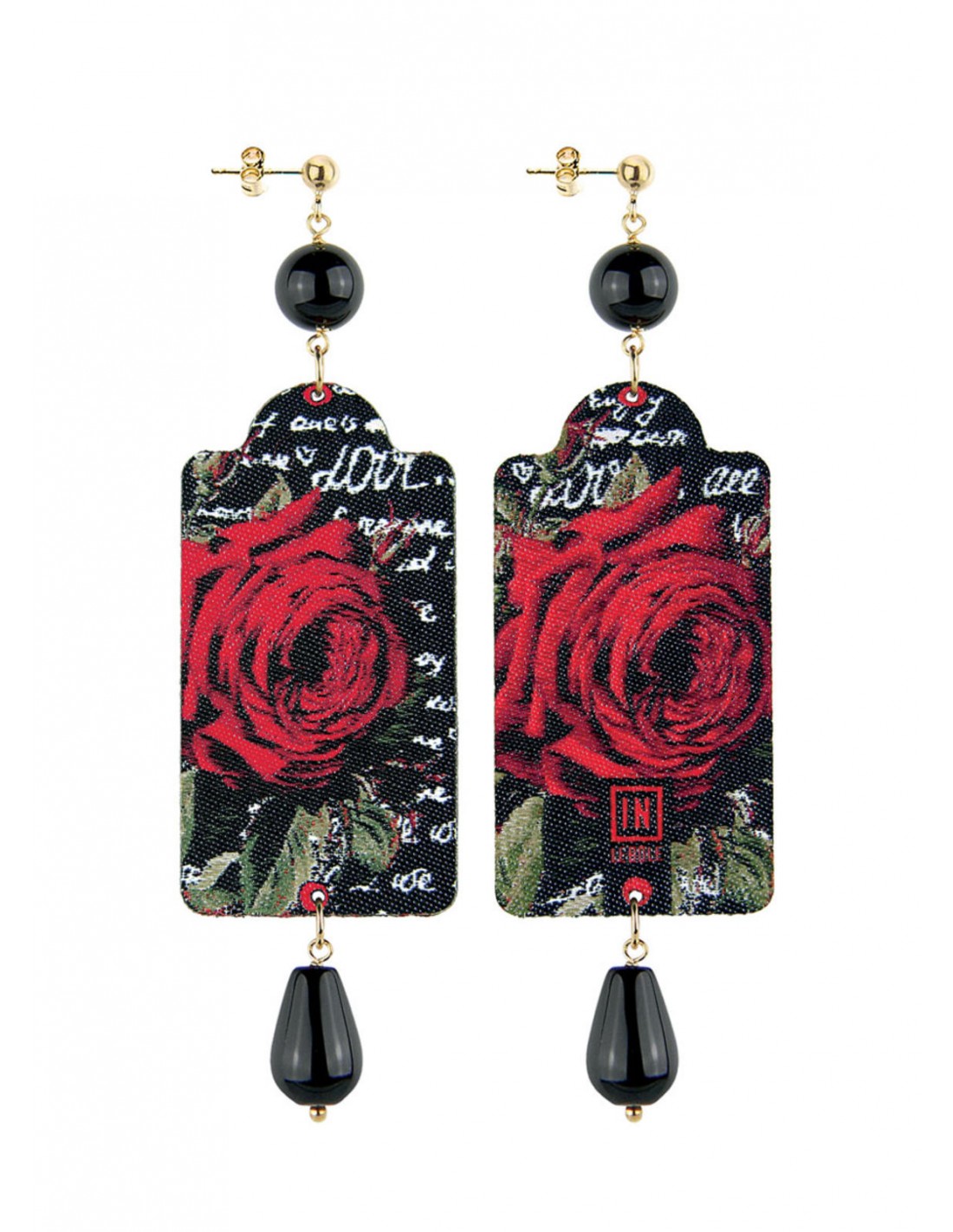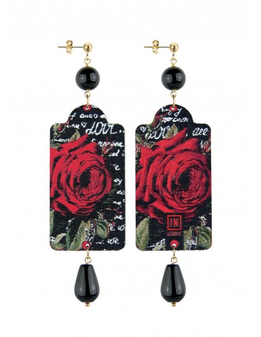 Orecchini Neri con Rosa Rossa Lebole collezione The Tag