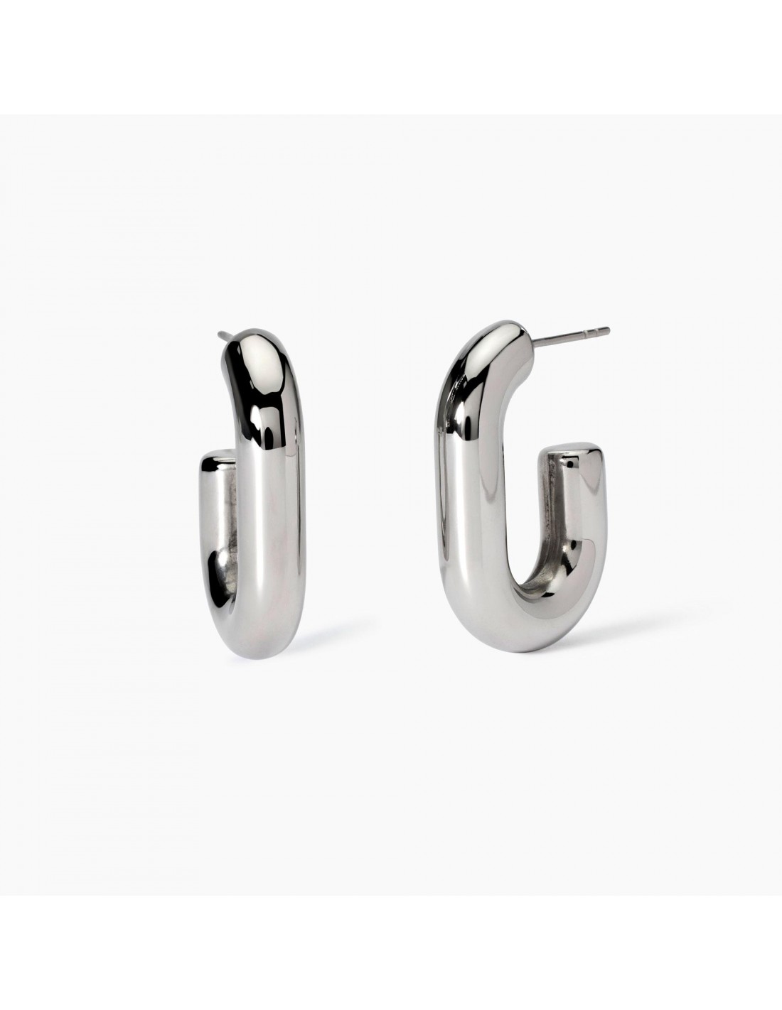 Orecchini rettangolari in acciaio dorato con bordi stondati.