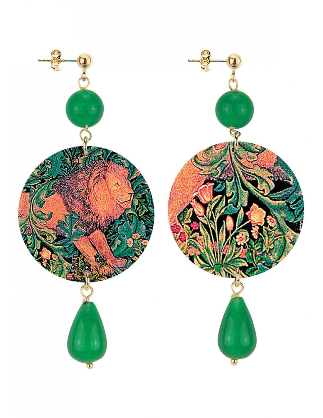 Orecchino Arazzo Verde con Leone e Fiori Lebole collezione The Circle