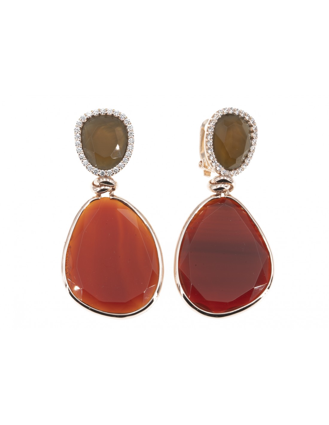 Orecchino pendente prodotto da Lucos in argento dorato ed agata
