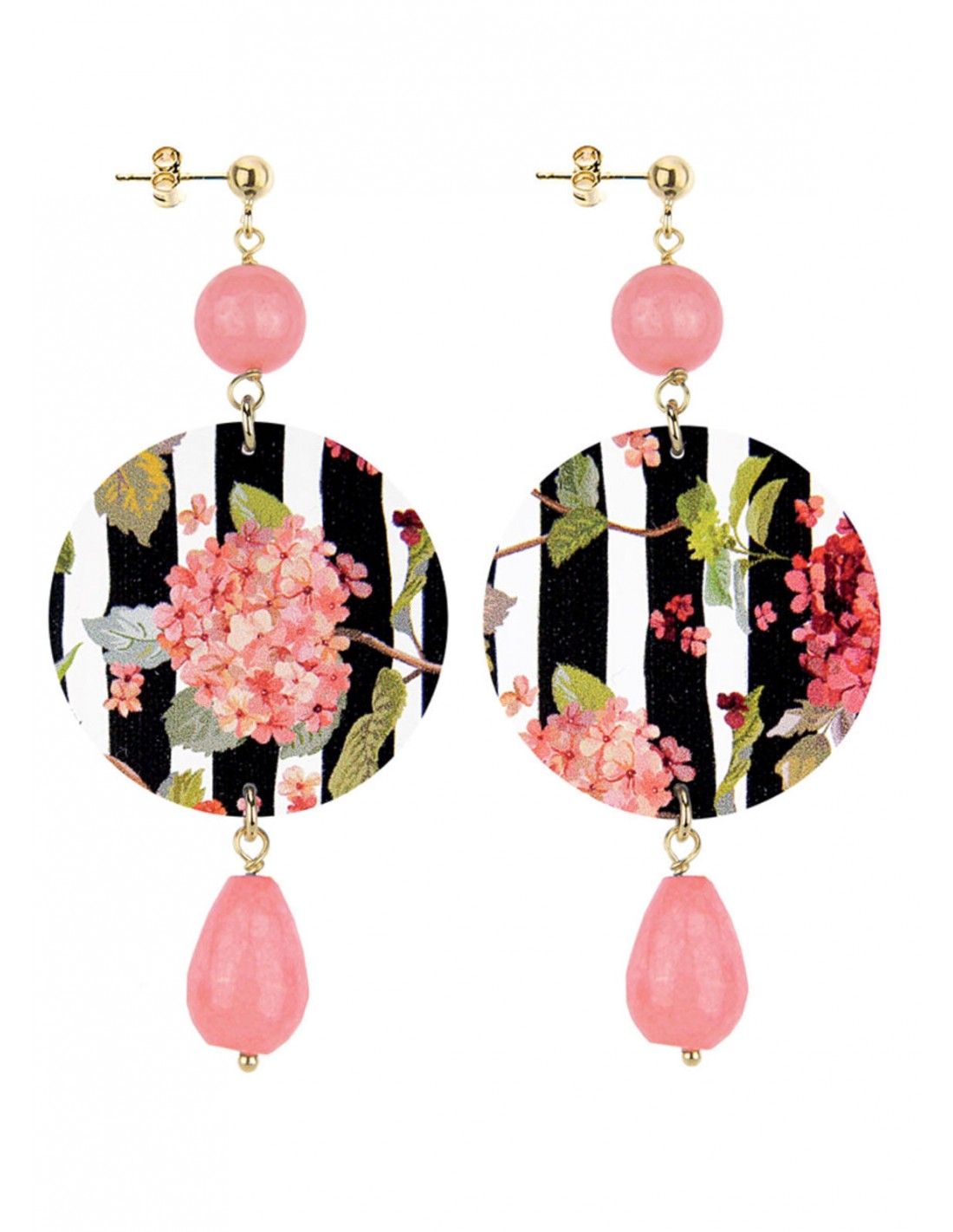 Orecchino Rosa a Riga Nera con Fiore Ortensia Lebole collezione The Circle Flower