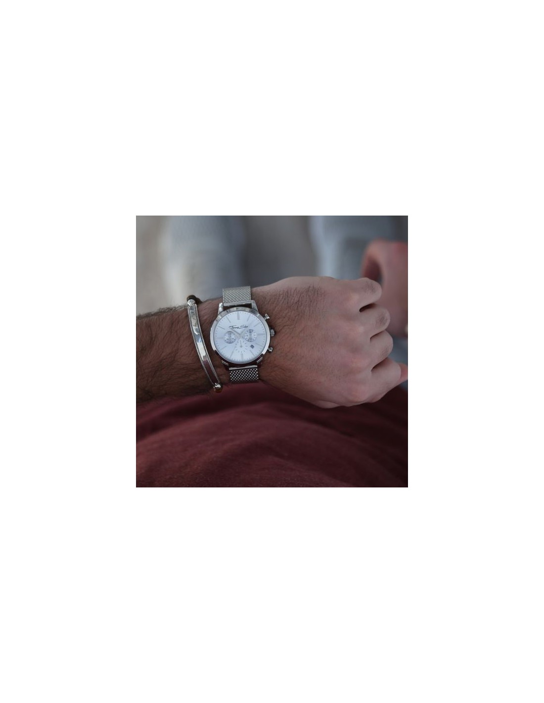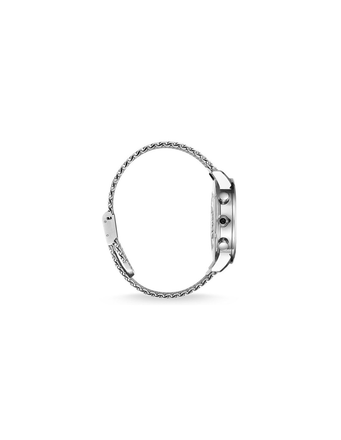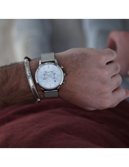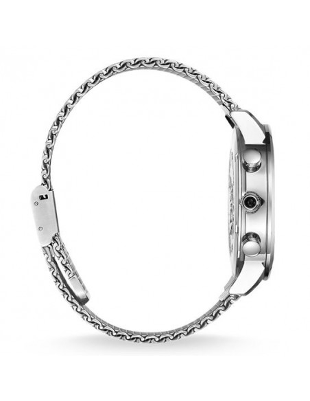 corredato da un sofisticato bracciale in maglia milanese, questo raffinato orologio dimostra massima semplicità ed eleganza, anche grazie al quadrante color argento con finitura sunray. Un cronografo nato per chi ama un design classico abbinato a linee essenziali.