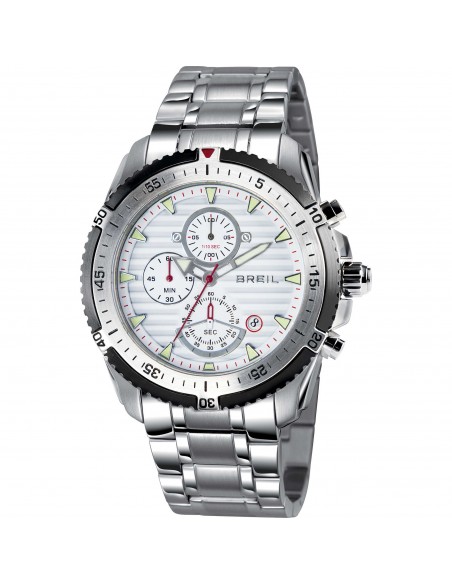 Orologio Breil, Cronografo Della Collezione Ground Edge, Orologio Cronografo Da Uomo, La Dimensione Della Cassa È Di 47Mm, Cronografo Al Quarzo Vd57, Cassa In Acciaio 47 Mm, Quadrante Bianco Con Dettagli Rossi, Datario, Sfere Con Luminous, Resistenza All'Acqua Di 10Atm, Bracciale In Acciaio, Chiusura Diver.