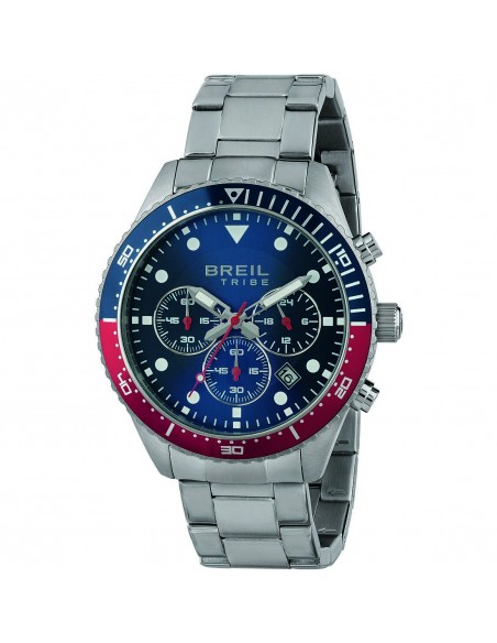 Orologio Cronografo Da Uomo Di Breil Tribe Della Collezione Sail. Modello Con Cassa Del Diametro Di 42 Mm. Movimento Pe 902. Cassa In Acciaio. Corona E Pulsanti In Acciaio Lucido. Lunetta Rossa E Blu Con Minuteria. Quadrante Blu Con Doppia Finitura Lucida. Contatori Blu Lucidi. Indici Con White Luminous. Sfere Silver Con White Luminous. Vetro Minerale. Datario. Resistenza All'Acqua: 10 Atm. Bracciale In Acciaio. Chiusura Con Pulsanti E Fermaglio Di Sicurezza.