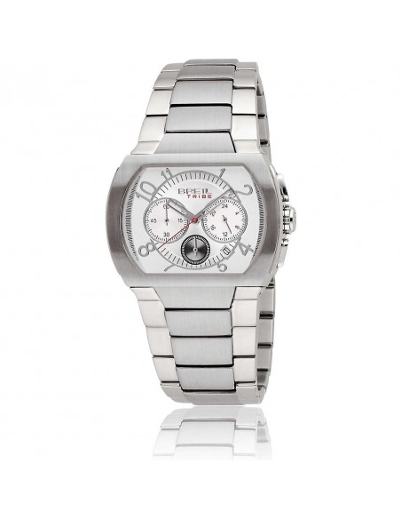 Quadrante argentato con lancette argentate e numeri argentati, Finestra di visualizzazione della data, Sottoquadrante 24 ore, Cronografo100m resistente all'acqua,  Bracciale in acciaio inossidabile con chiusura doppia  incisa con Breil Tribe, Cassa e corona in acciaio inossidabile con incisione del logo Breil Tribe, Vetro minerale curvo antigraffio temprato, Fondello a vite in acciaio inossidabile, Confezione regalo Breil, senza istruzioni, Diametro quadrante con corona 42mm, spessore della cassa 11mm.