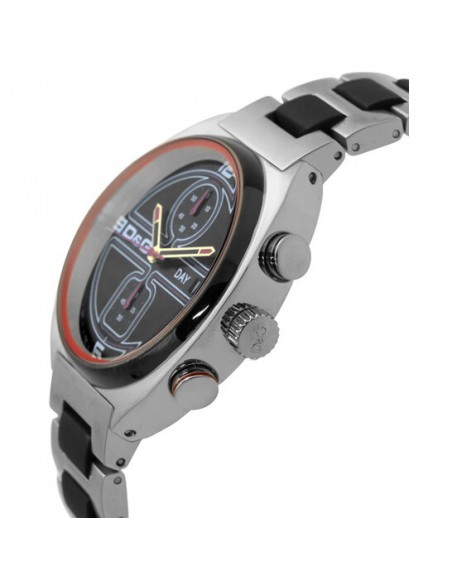 Orologio D&G dw0303 un orologio da uomo con cronografo e bracciale in acciaio: cronografo con movimento al quarzo. Cassa in acciaio 40mm. Fondo a vite. Vetro minerale con cornice colorata stampata all'interno. Impermeabile sino a 50 metri. Bracciale in acciaio con inserti i pu. Chiusura diver personalizzata D&G. Astuccio e garanzia dolce & gabbana.