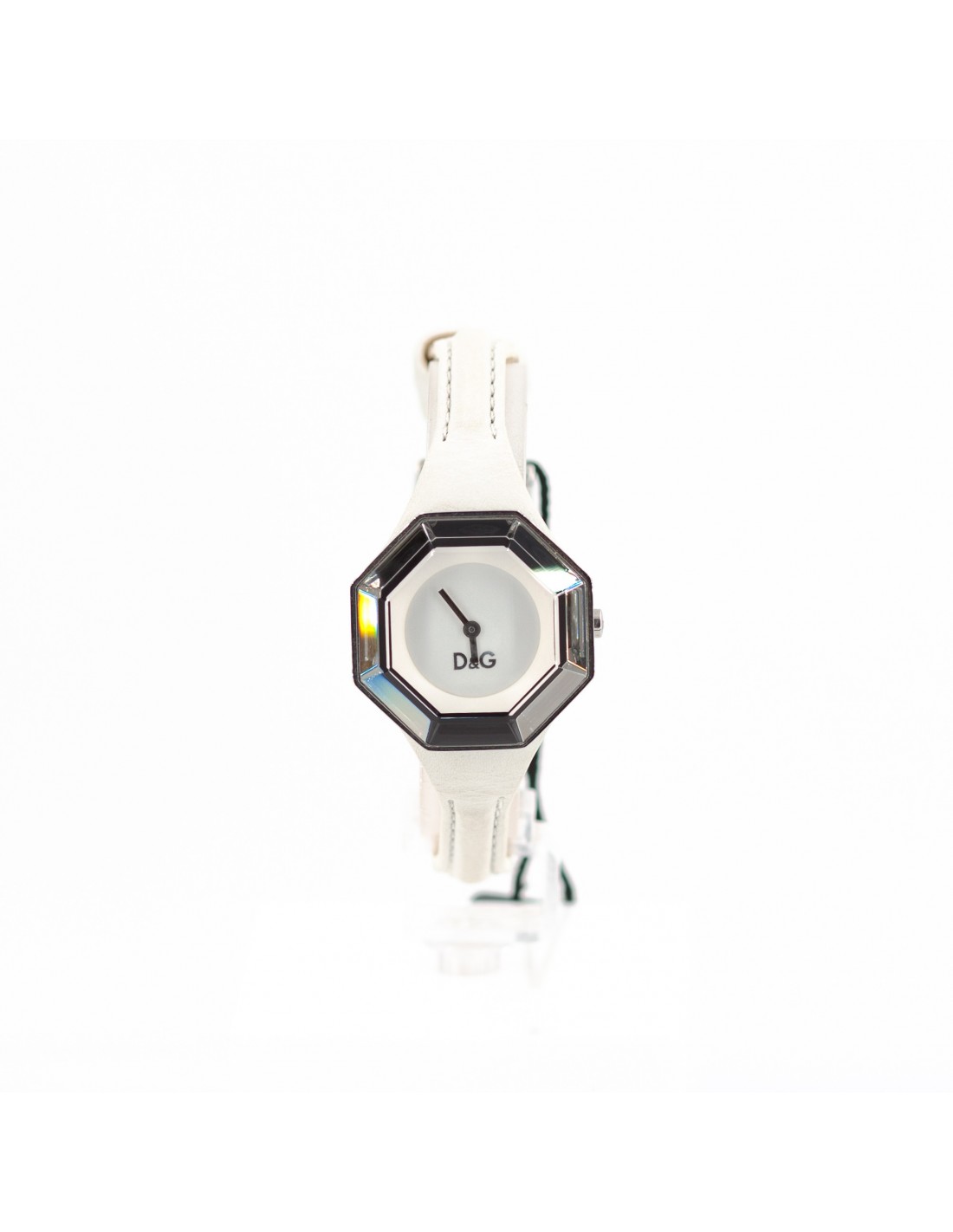 Orologio Donna D&G Solo tempo Time String con movimento al quarzo. Cassa in acciaio con 8 facce e cinturino in pelle bianco. Vetro minerale con quadrante bianco. Impermeabile fino a 30 M.