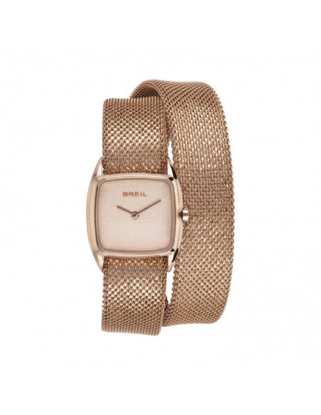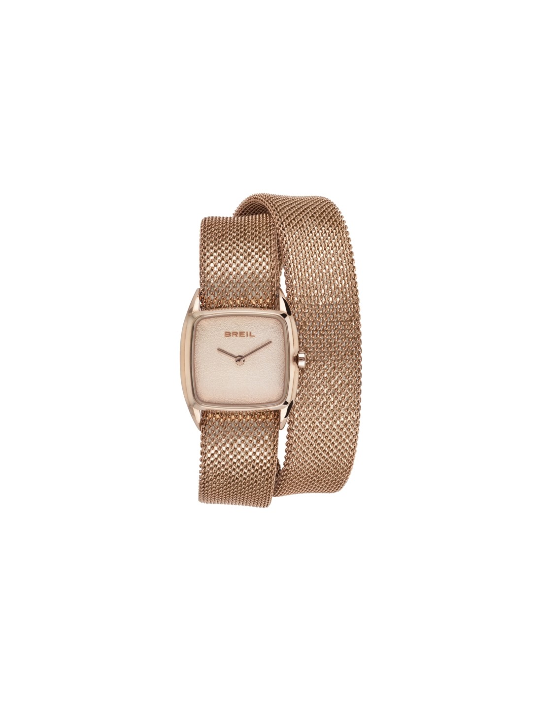 L'orologio solo tempo New Snake si avvolge sinuosamente al polso femminile: il morbido cinturino in pelle argentata affiora dalla leggera maglia metallica IP rose che lo riveste, creando un effetto sorprendentemente cangiante. La cassa quadrata in acciaio IP rose racchiude un quadrante rosa lavorato. Eleganza e glamour in un unico prodotto.