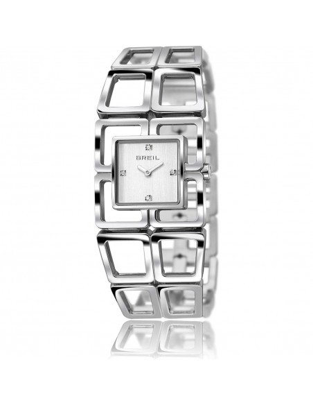 Orologio Breil, Collezione B GLAM, Solo tempo donna 30mm di dimensioni di Cassa, Silver, Movimento Myota 2025, Cassa di forma in acciaio 30x30mm, Quadrante silver con swarovsky agli indici, Vetro minerale, W.R. 5 atm, Bracciale in acciaio lucido con maglie quadrate bucate di larghezza decrescente, Chiusura a gioielleria. Referenza: TW1112.