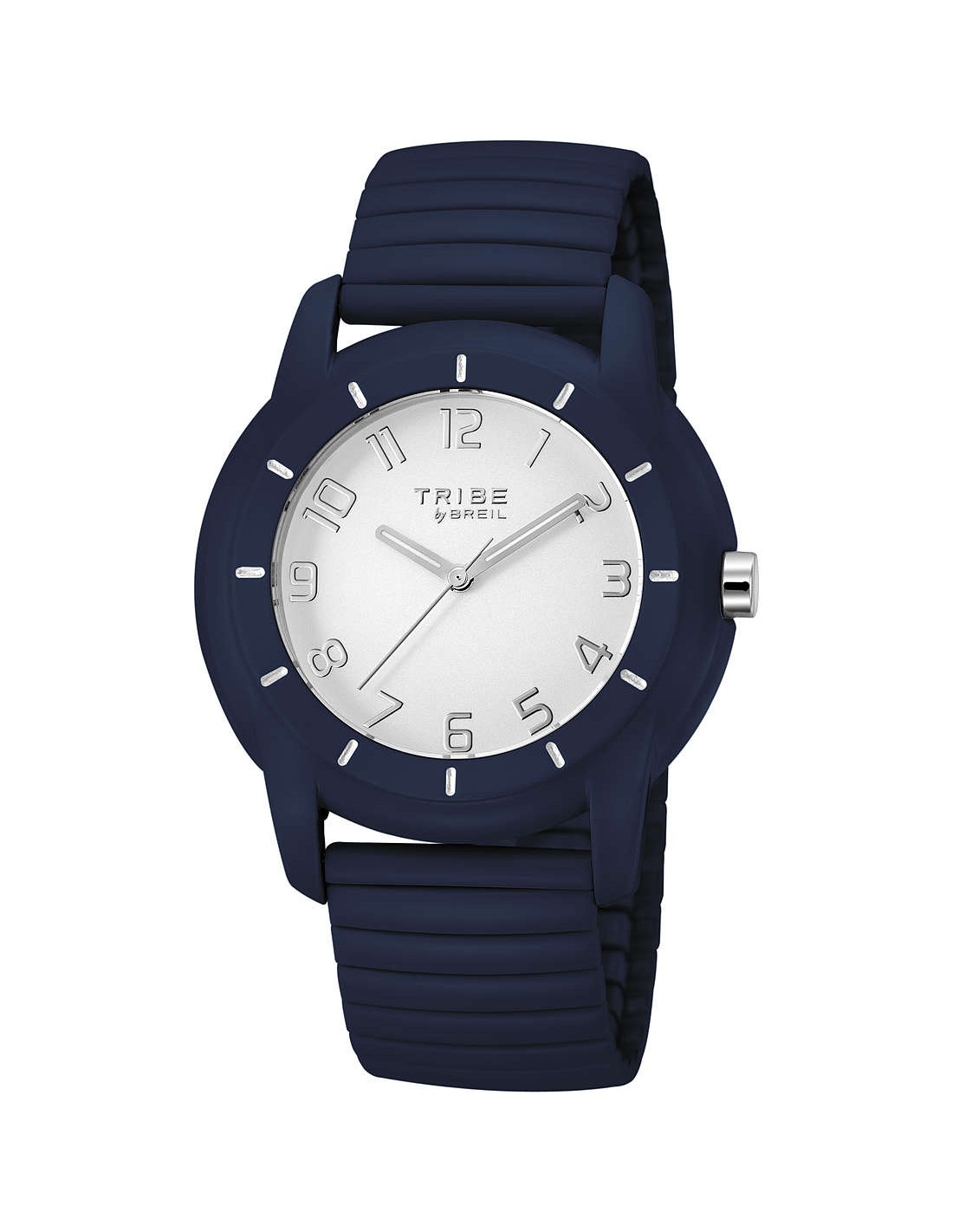 Orologio Tribe Breil con Cassa in acciaio 41 mm, Movimento al quarzo Miyota Y121, W.R. 5 atm, Bracciale Elasticizzato in Acciaio con rivestimento in Ceramica di colore Blu, Vetro Minerale antigraffio. Referenza: EW0095.
