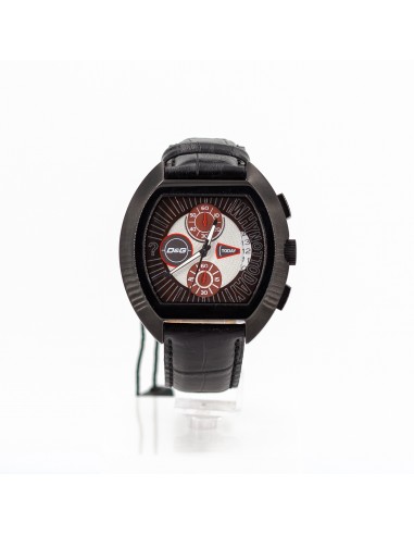 Orologio cronografo uomo High Security. Cassa 40 x 35 mm in acciaio con trattamento IP nero. Sfere trattate con materiale luminescente. Vetro minerale. Cinturino nero in pelle stampa coccodrillo. Movimento quarzo. Impermeabile fino a 50m. Fibbia personalizzata D&G.