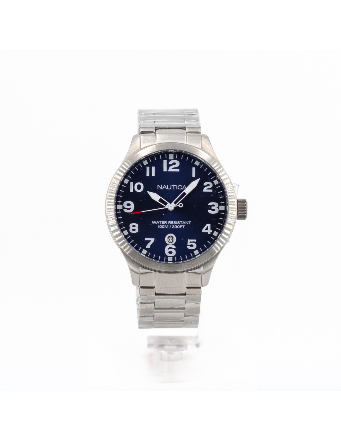Orologio Nautica con datario in accaio satinato, cassa 44mm. WR 100mt.