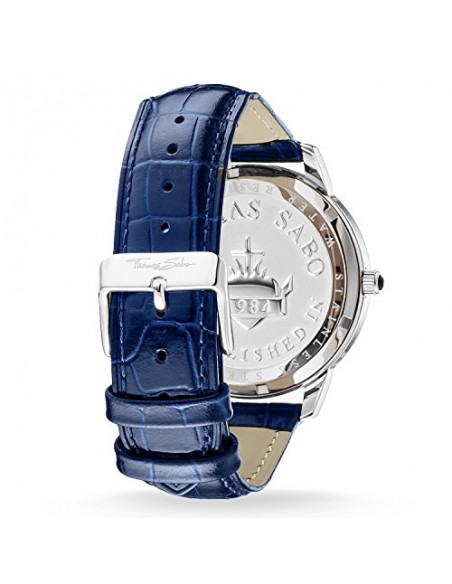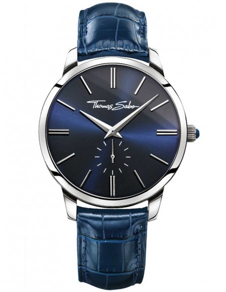 Categoria Orologio da uomo. Materiale Acciaio, Pelle. Colore argentato, blu. Chiusura fibbia ad ardiglione in acciaio. Cassa/lunetta acciaio. Quadrante/lancette 3 Lancette, quadrante blu specchiato spazzolato soleil. Vetro minerale temprato antiriflesso con rivestimento in zaffiro. Funzioni ore, minuti, piccoli secondi. Bracciale cinturino di pelle blu. Impermeabilità 5 ATM. Movimento MIYOTA 1L45 (Quarz). Diametro appross. 4,20 cm. Larghezza cinturino appross. 2,00 cm. Altezza cassa appross. 0,90 cm. Codice articolo WA0213-271-209.