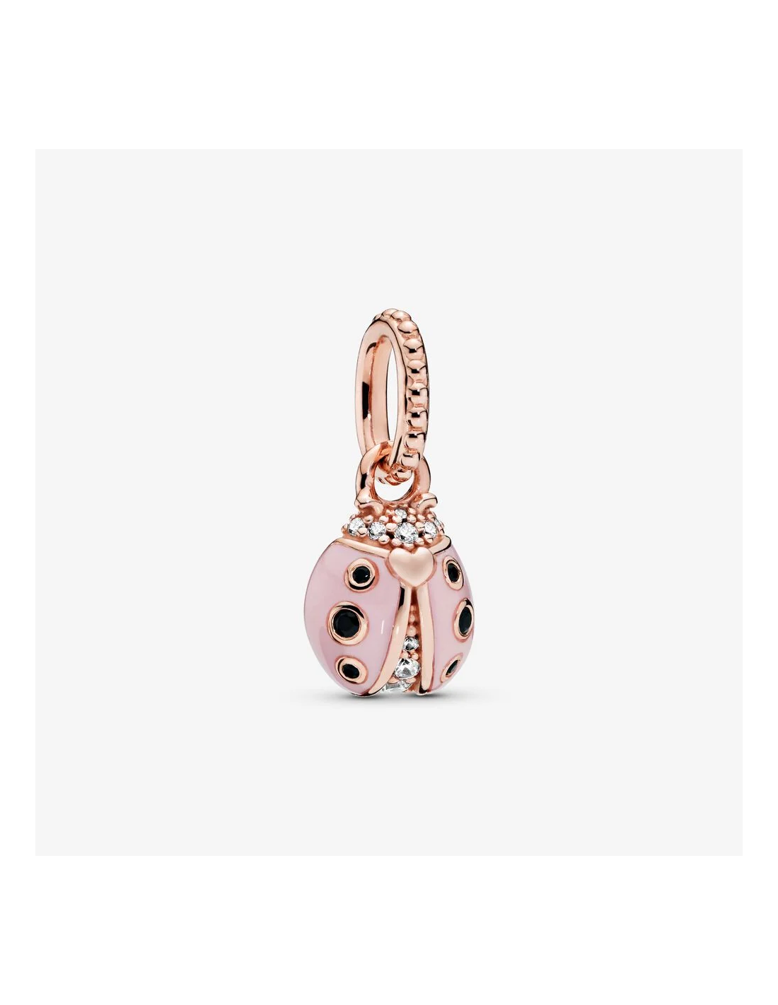 La coccinella è un simbolo di buona sorte piccolo, ma molto significativo. Realizzato nella nostra esclusiva lega metallica con placcatura in Oro rosa 14K, questo pendente in Pandora Rose ha la forma di una coccinella. Il pendente è decorato anche da piccoli cristalli neri, smalto rosa applicato a mano sulle ali e pietre di zirconia cubica scintillanti incastonate sul corpo. Aggiungilo alla tua collana preferita come portafortuna.