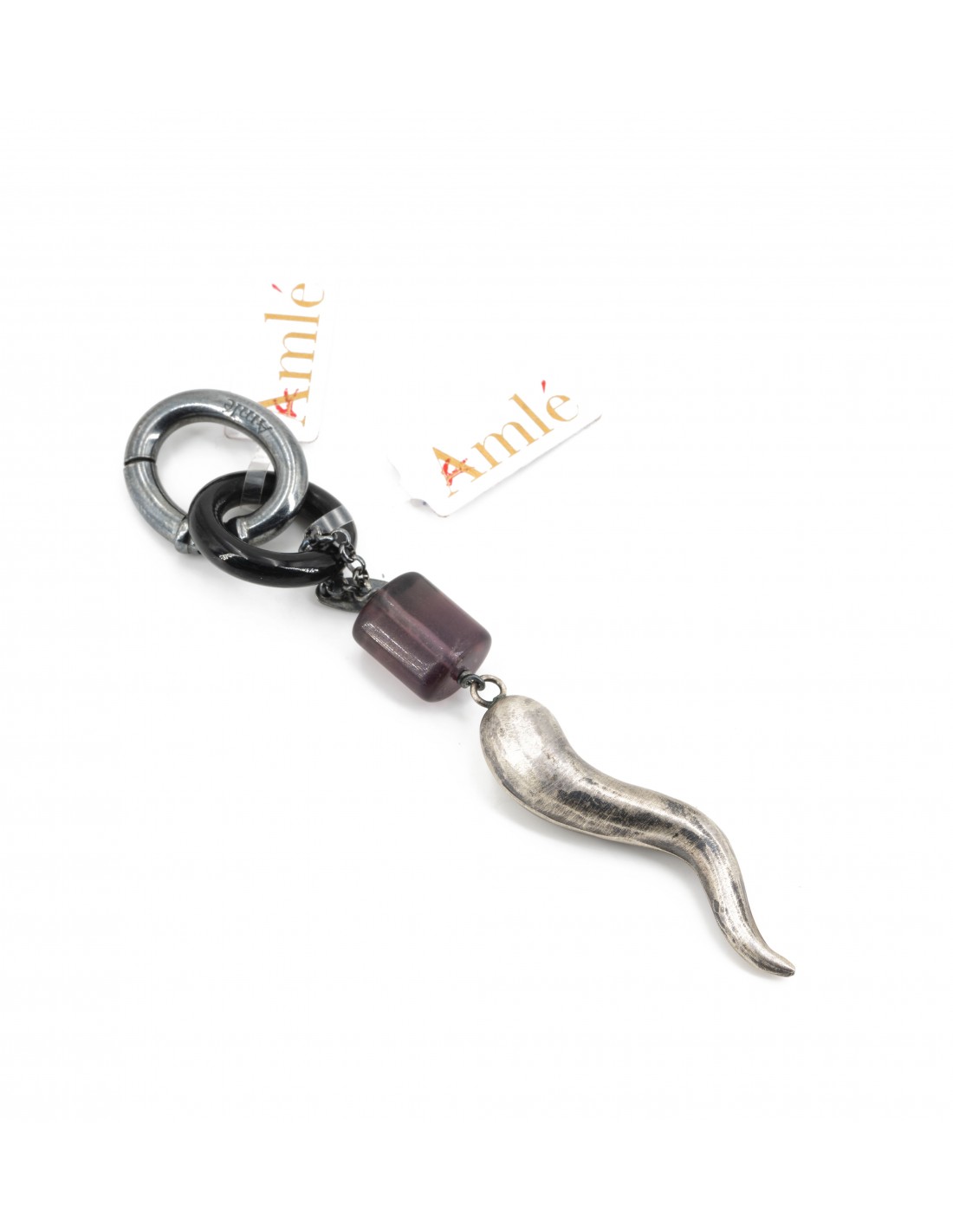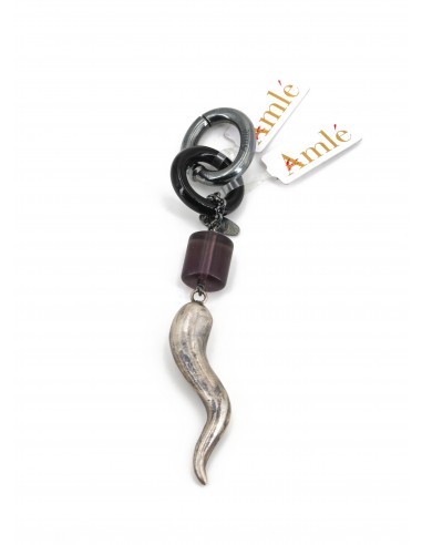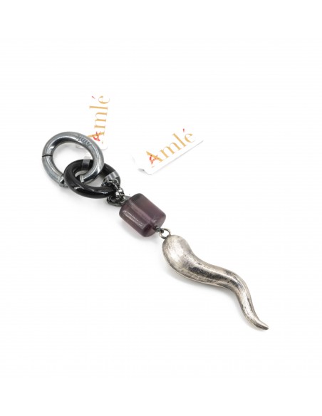 Pendente Corno Amlè in Argento Brunito (925), Corno Nero e Ametista