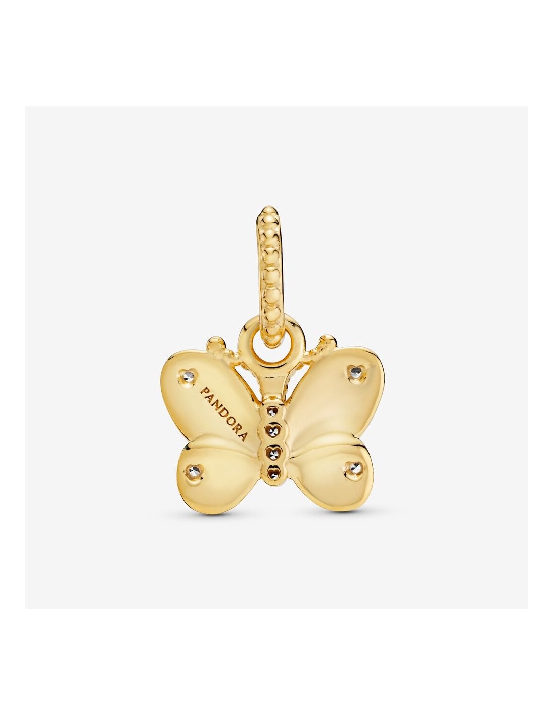Scegli questo pendente con farfalla in Pandora Shine che rappresenta metamorfosi e bellezza. Il gioiello, placcato in Oro 18K, è decorato da linee sulle ali, sfere sulle antenne e scintillanti pietre luminose. Dettagli a forma di cuore completano lo splendido design.