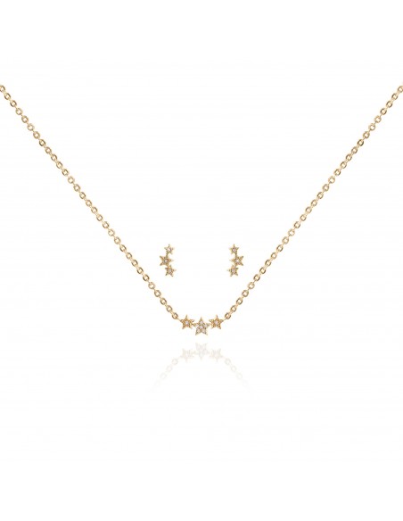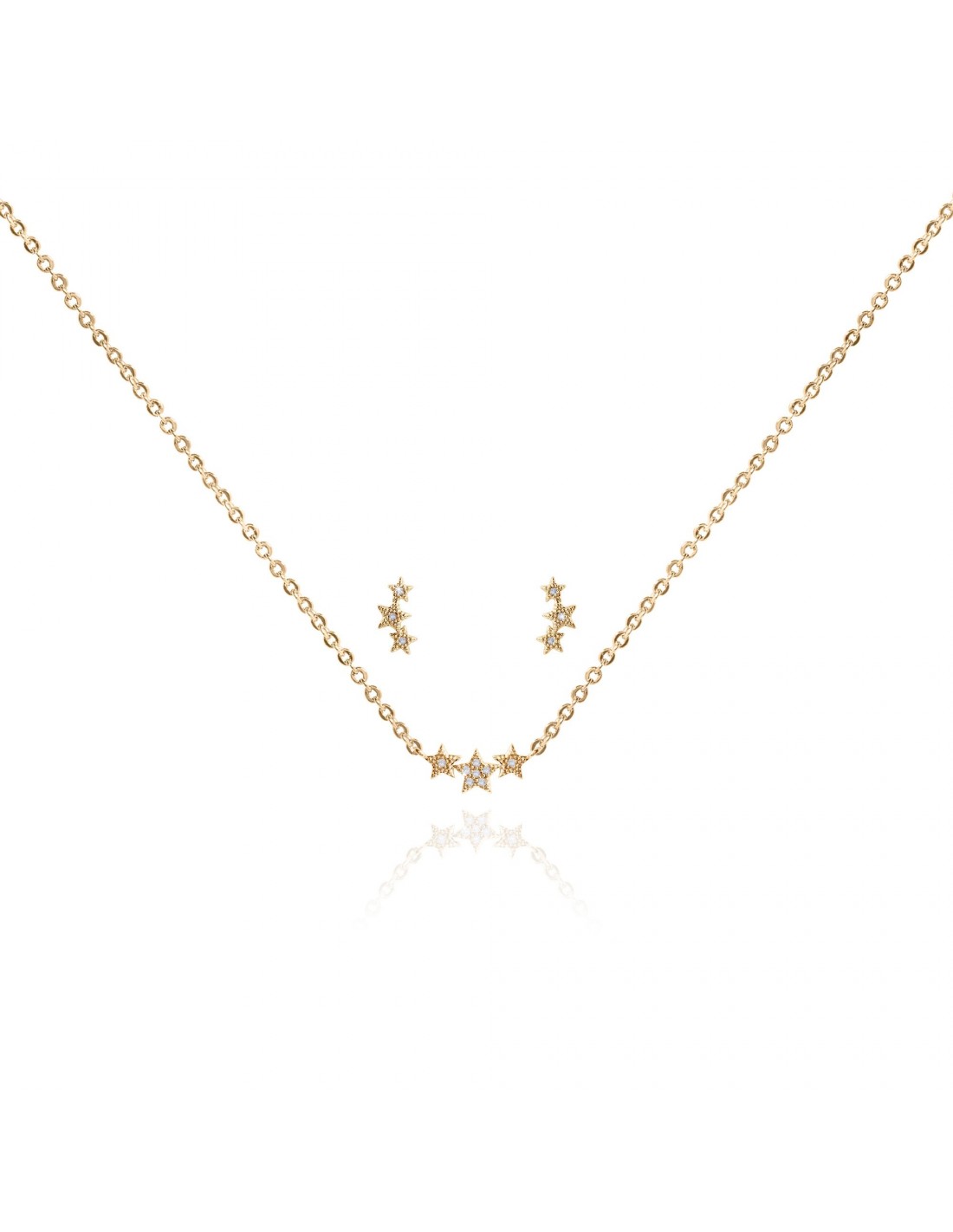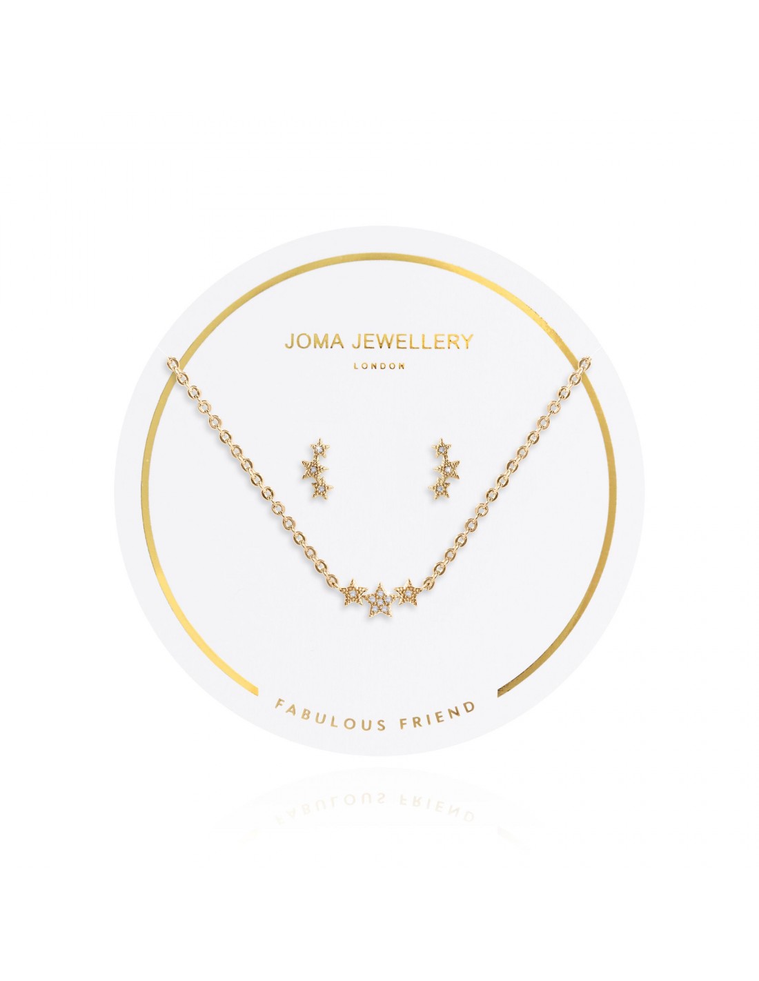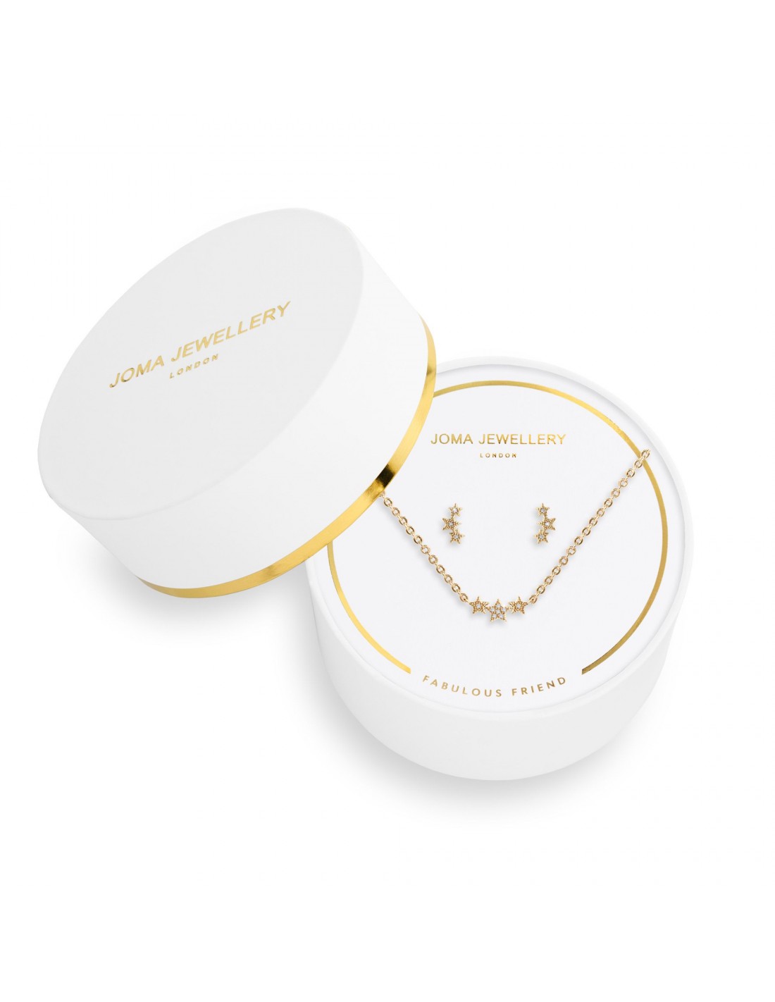 Questo bellissimo set di sentimenti rotondi si apre per rivelare i tesori del dono estremo. Questa collana e orecchini a stella sparsi sono lussuosamente incastonati in metallo placcato in oro con decorazioni in pavé scintillanti per un tocco accattivante, che farà sorridere il tuo amico favoloso non appena apriranno la graziosa confezione regalo rotonda.