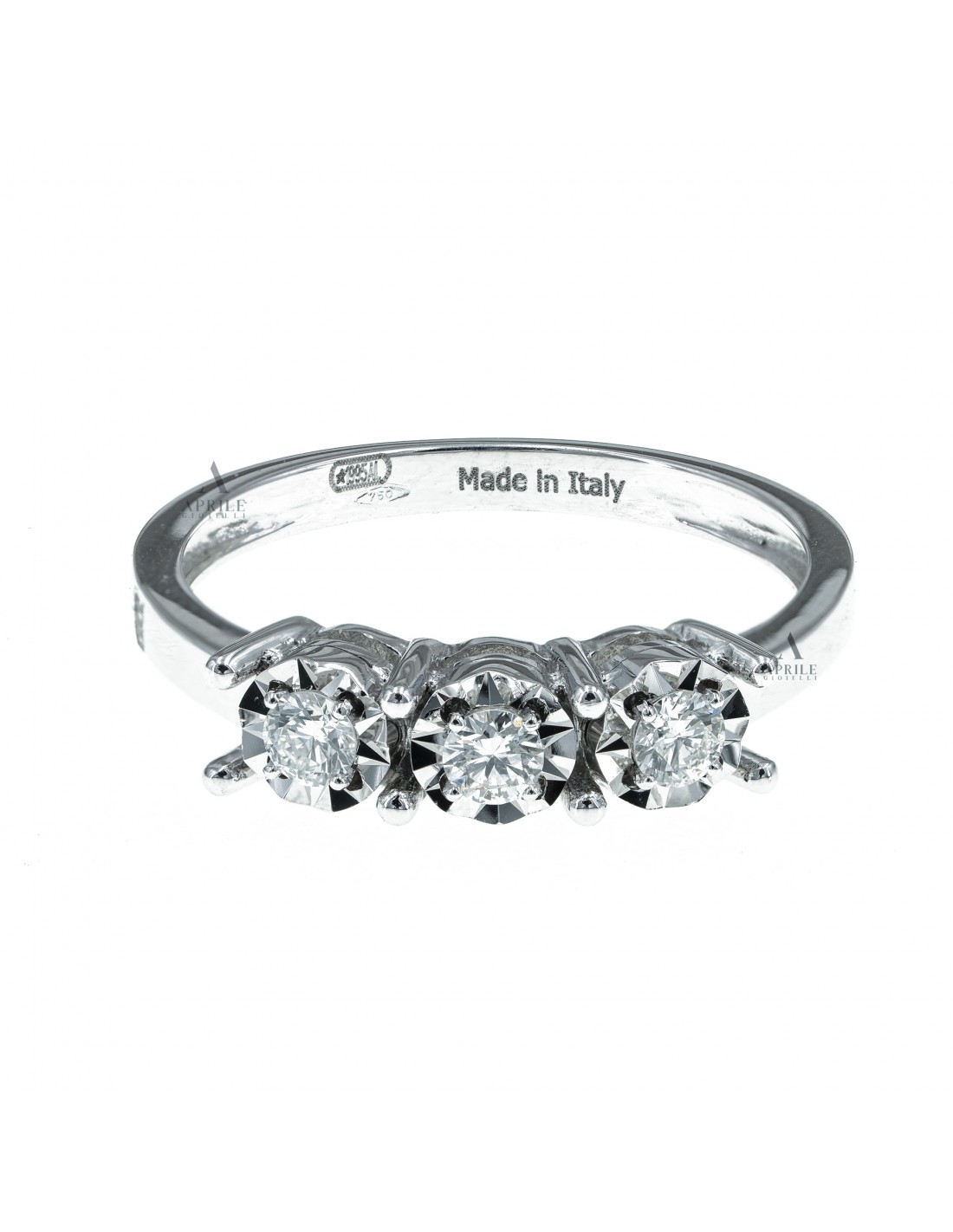 Anello Trilogy Davite & Delucchi da donna in oro bianco 18 carati con diamanti naturali da 0,24 carati colore G, purezza VS. Peso totale dell'oro 3,40 grammi.