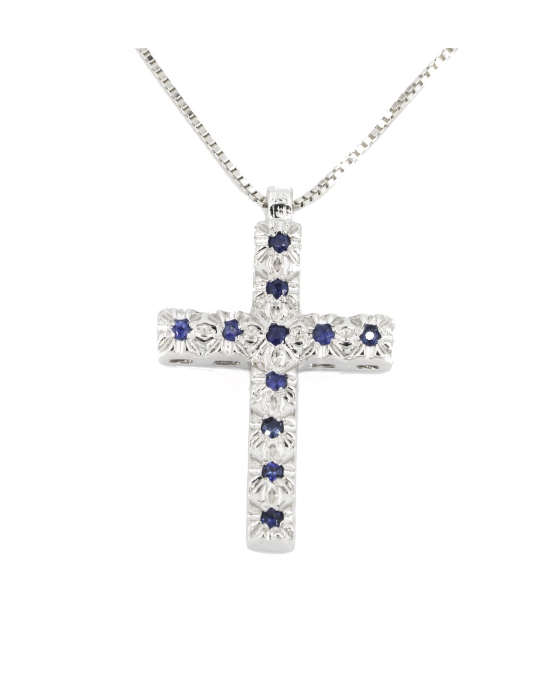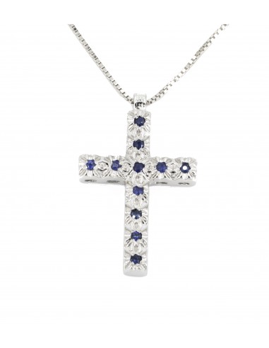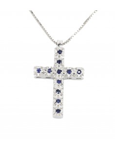 Croce in oro bianco con zaffiri blu