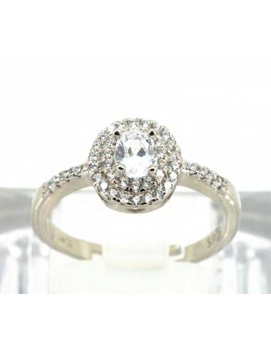 Anello Halo Donna Centrale Zircone Ovale Acquamarina E Zirconi